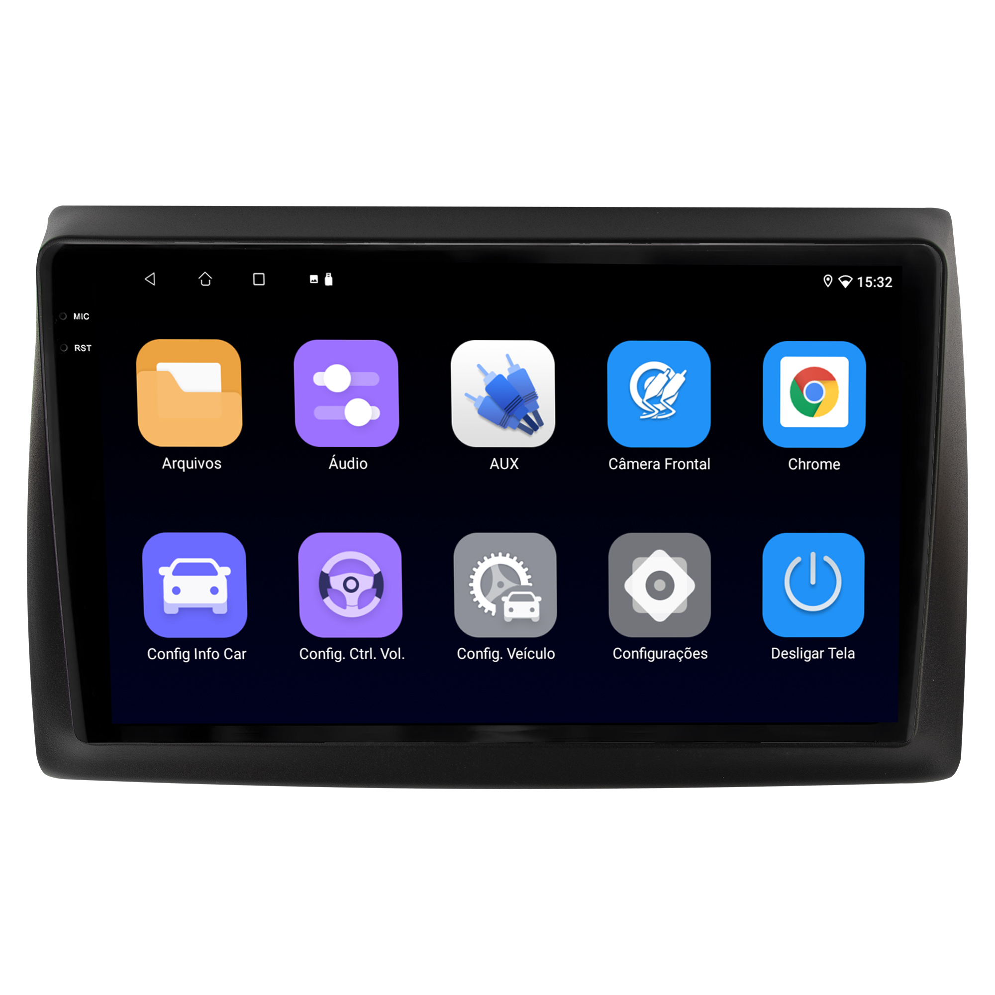 - Bluetooth: Permite realizar e receber ligações. Possui agenda telefônica com pesquisa de nomes, histórico de chamadas, funções auto-conectar.
